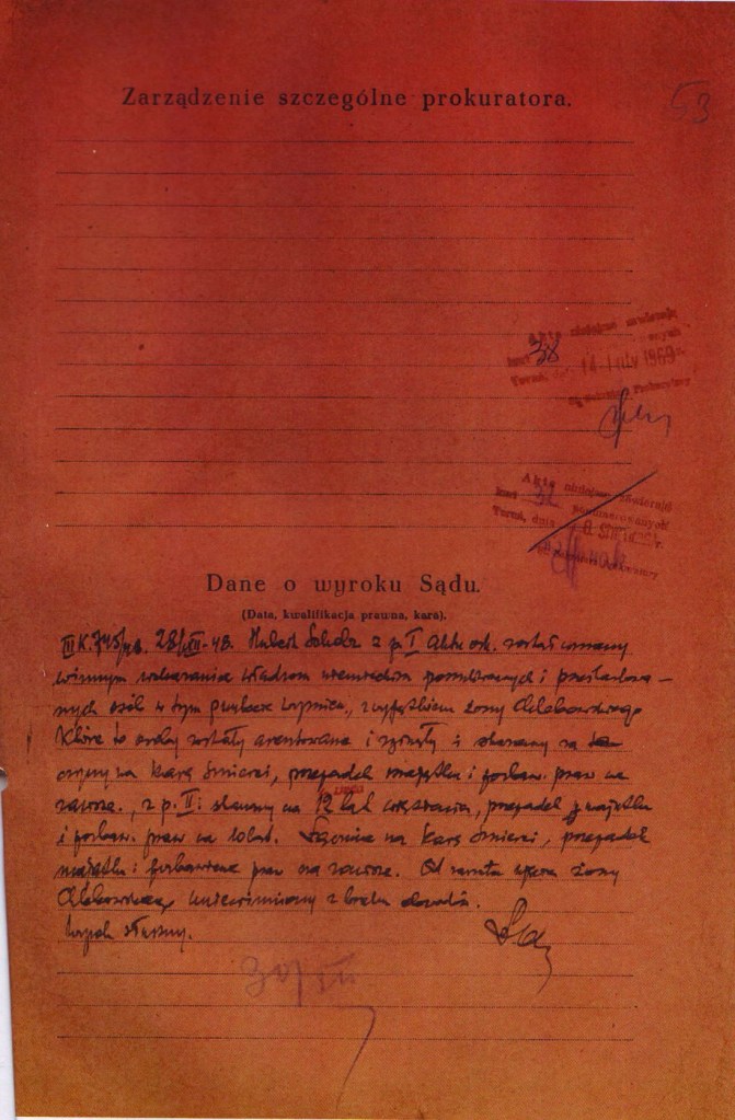 SKAZANY ZAOCZNIE NA KARĘ ŚMIERCI W ROKU 1949